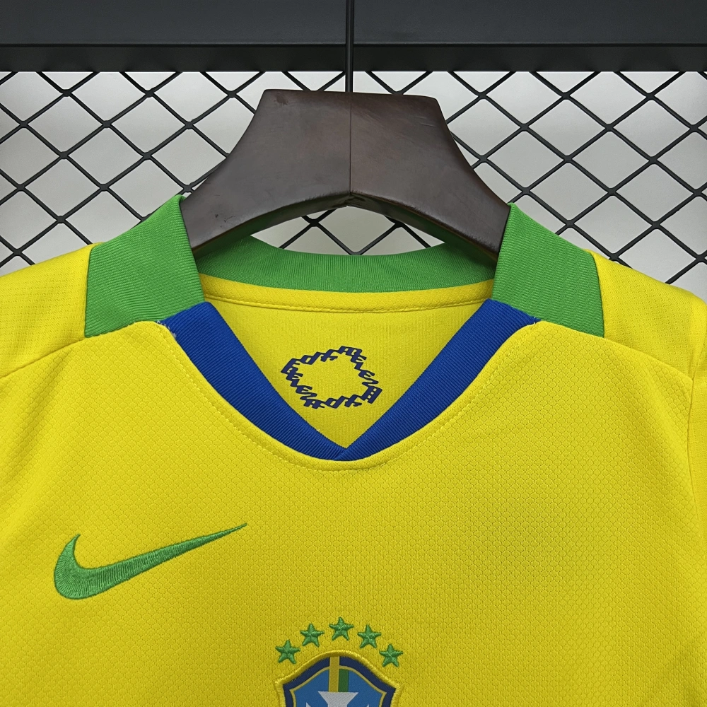 2025 Brazil Home Kids Football jersey Kits Fan edition